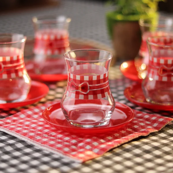 سيت استكانات للشاي يتكون من 6 استكانات بسعة 100مل , ياتي السيت مع قطع كلينكس كاروهات