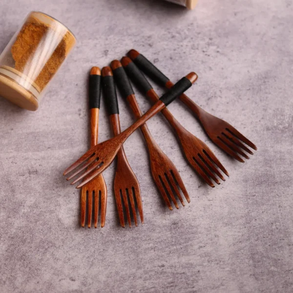 سيت شوكات طعام مصنوعة من الخشب الطبيعي, يتكون السيت من 6 شوكات