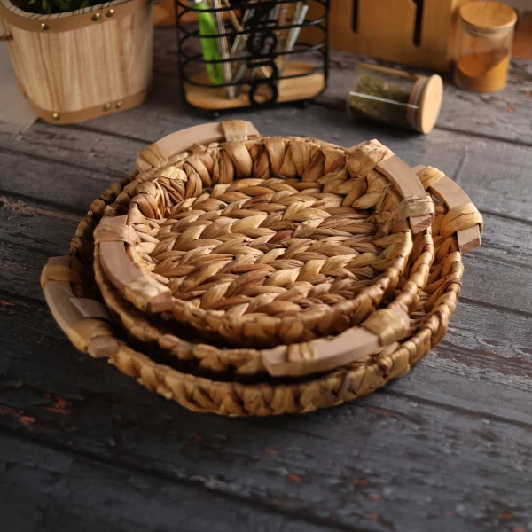 سيت صواني خوص للتقديم شكل دائري, يحتوي السيت على ثلاث قطع باحجام مختلفة