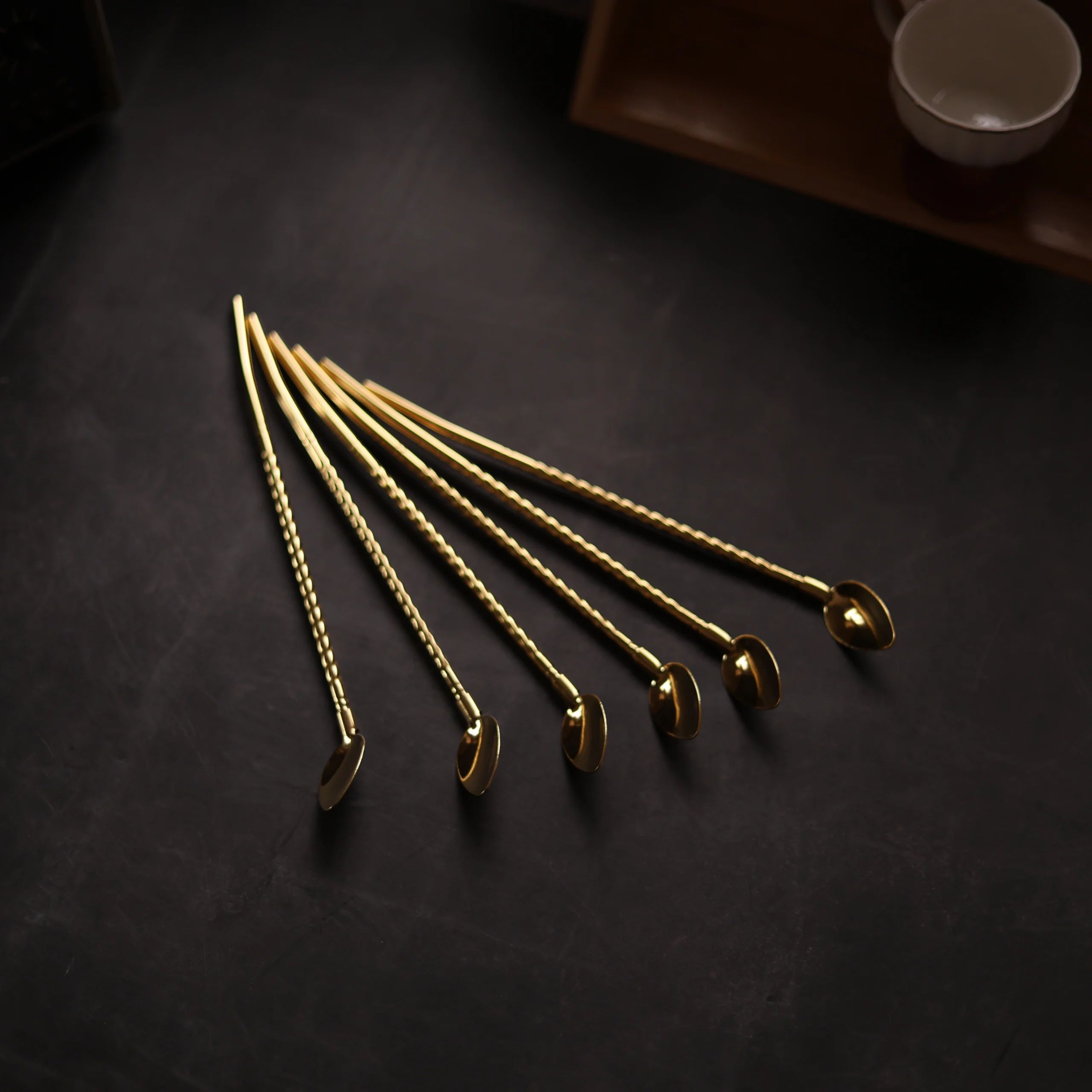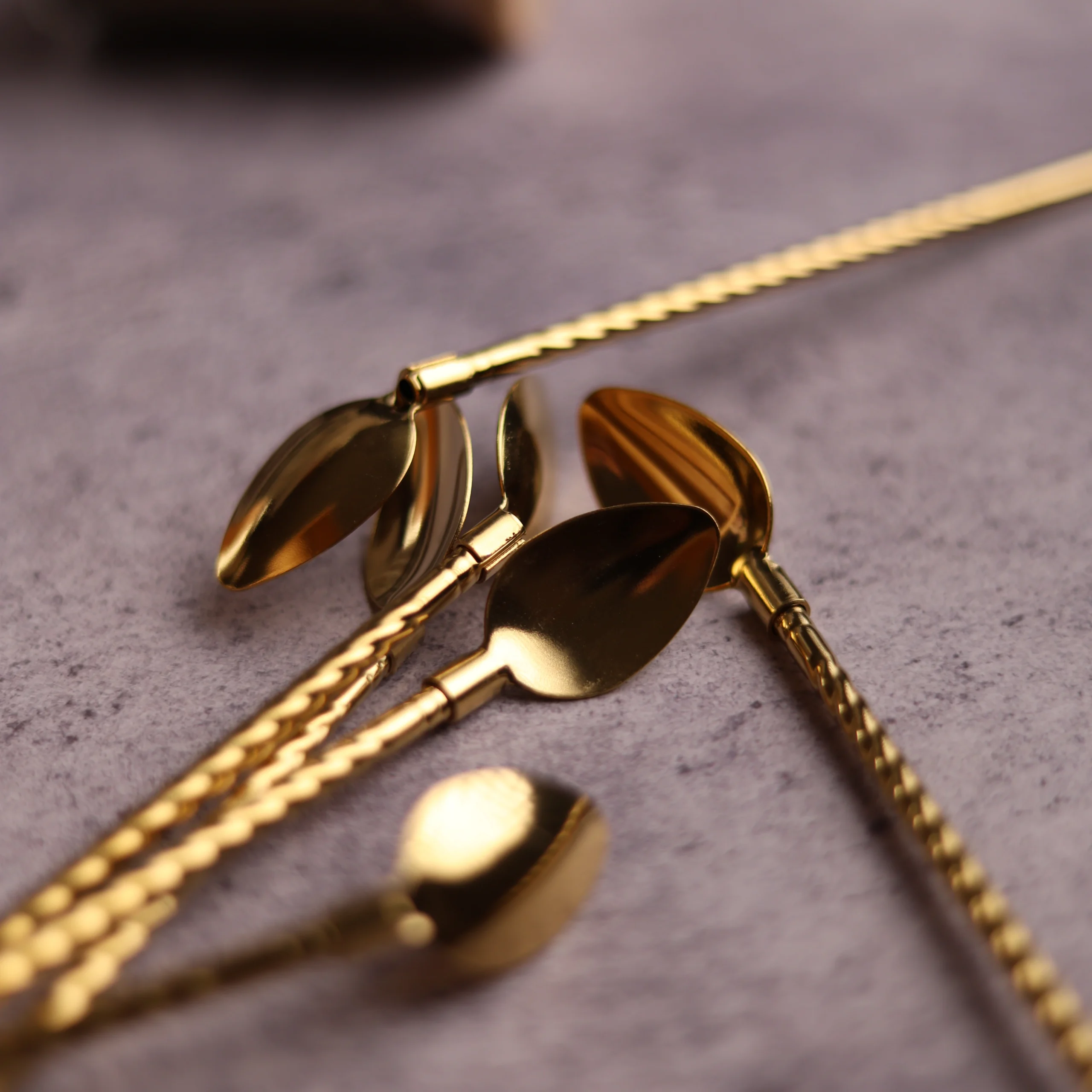 سيت قصبات مصنوعة من الستانلس ستيل على شكل ملاعق, بلون ذهبي و تصميم انيق