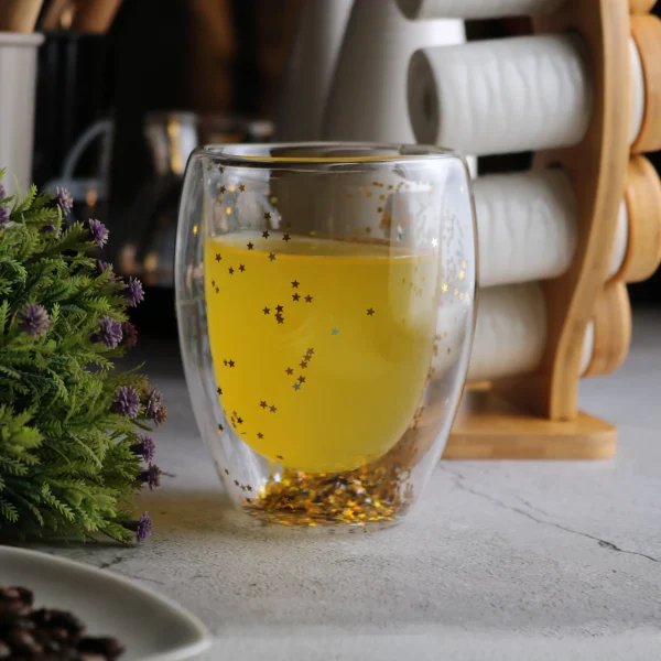 كوب مصنوع من طبقتين من الزجاج بسعة : 300مل , و يحتوي على نجوم في الداخل