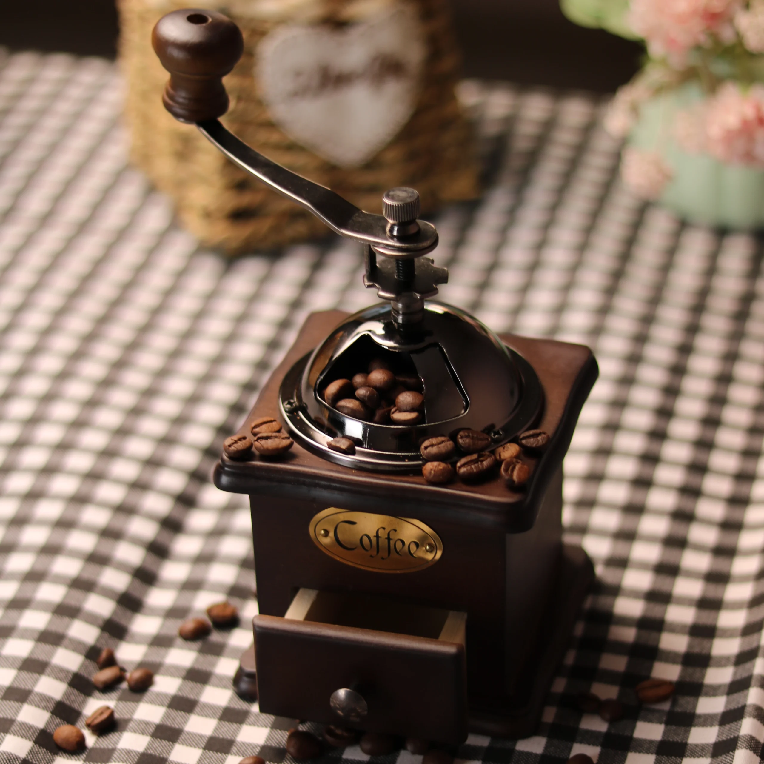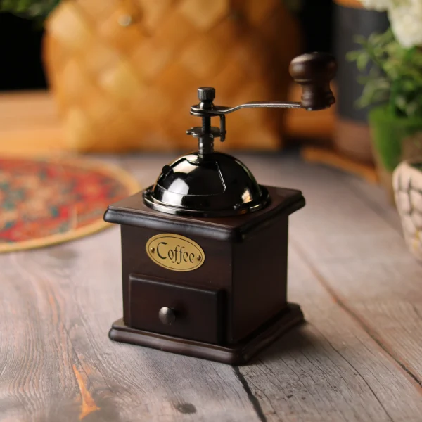 مطحنة قهوة يدوية مصنوعة من الخشب الطبيعي, تستعمل لطحن القهوة بدرجة طحن خشنة و متوسطة