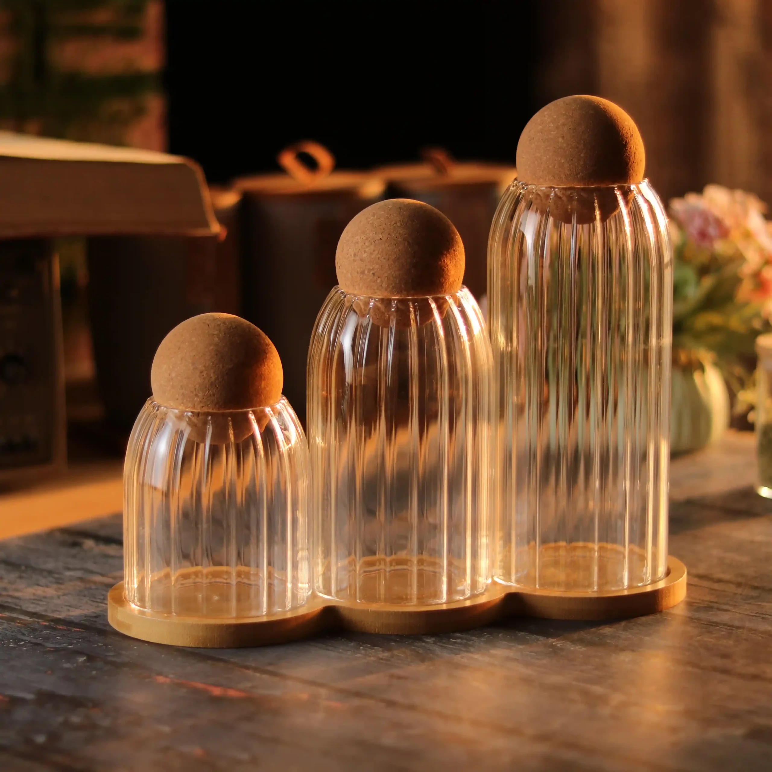مجموعة من ثلاث علب زجاجية شفافة بأحجام مختلفة مع أغطية خشبية محكمة الإغلاق. تمنحك مزيجاً من الأناقة والعملية لحفظ التوابل، المكسرات أو الحلويات، وتضفي لمسة ديكور عصرية على مطبخك أو طاولة التقديم